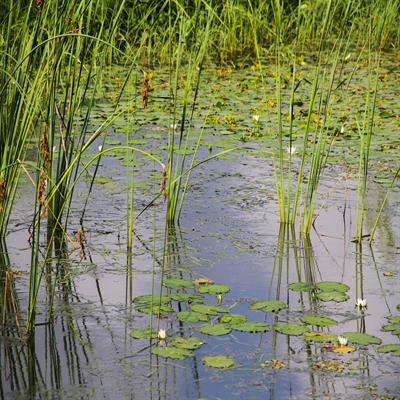 Totally Submerged Plants - Water starwort submerged in a marsh pond.